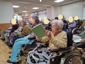 曲目は入居者さまのお好きな曲を選んでくださり、聴きなじみのある曲ばかりで自然と口ずさんでおられました
